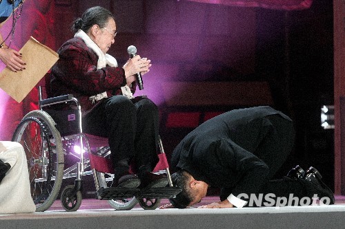 2010年1月14日讯,北京,电影《孔子》首映发布会在北京举行。导演胡玫携主演周润发、周迅、陈建斌、王斑等出席。《孔子》首映礼现场周润发给全国政协委员、中国孔子基金会副会长,孔子第77代嫡孙女孔德懋女士当场下跪行礼。并亲自阐述作为孔子的后人她对于对于《孔子》的看法,亲切赠送礼物。中新社发 张郎 摄