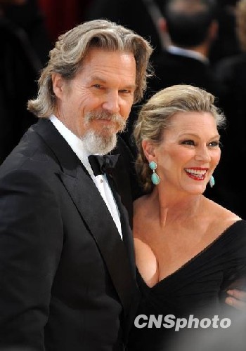 当地时间3月7日晚,第82届奥斯卡金像奖在好莱坞揭晓。在《疯狂的心》中扮演男主角的杰夫·布里奇斯携妻子走过红地毯。杰夫·布里奇斯被认为是奥斯卡影帝的最大热门。中新社发 张炜 摄