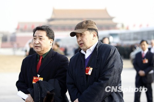 3月13日,姜昆、黄宏出席全国政协十一届三次会议闭幕会。中新社发 杜洋 摄