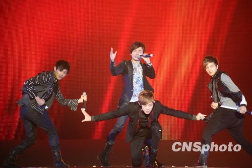 4月15日晚,台湾“棒棒糖”组合在“妈祖之光·世遗之华”大型电视晚会上以一曲《我是传奇》,引爆现场观众的热情与欢乐。当晚,“妈祖之光·世遗之华”大型电视晚会在台中县大甲镇体育场举行。中新社发 罗钦文 摄