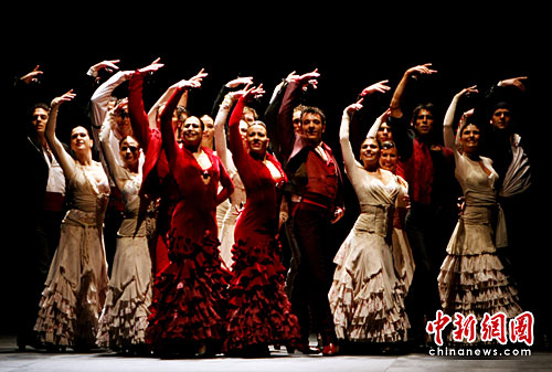 5月13日晚,作为西班牙文化标志的弗拉门戈舞亮相上海世博会。为了让中国游客进一步了解西班牙文化,西班牙馆专门邀请西班牙最高水准的国家芭蕾舞团来上海献演弗拉门戈舞。舞蹈团本次带来的节目极具原创性,之前从未在中国上演过。中新社发 杜洋 摄