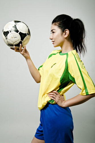 近日,黄奕身穿巴西队球衣拍摄了一组世界杯足球写真,为南非世界杯助威喝彩。