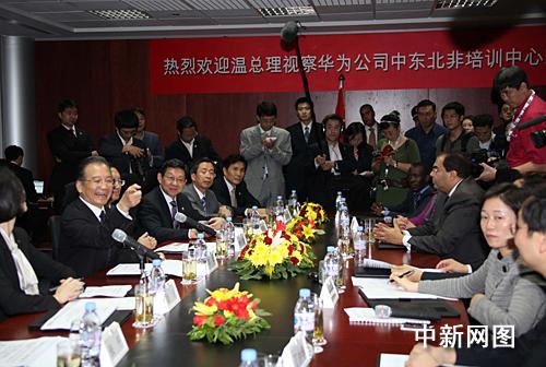 当地时间六日下午,正在对埃及进行正式访问的中国总理温家宝参观了位于开罗的华为公司中东北非培训中心并与大家座谈,气氛十分活跃,现场不时响起笑声。中新社记者 张朔 摄