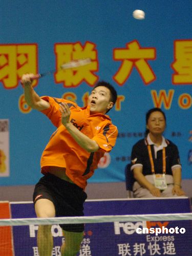 十月十九日,2006年中国羽毛球公开赛男单第三轮比赛继续进行,中国名将陈宏以21:19和 21:17战胜日本选手佐滕翔治,晋级八强。中新社发 何泉 摄