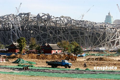随着第二十九届奥运会主会场——国家体育场工程(“鸟巢”)钢结构施工的最后一个环节——整体卸载的完成,“鸟巢”整体轮廓和雄姿较为完整地呈现在世人面前。目前,国家体育场工程正在进行内部水电等设备安装的前期准备工作,整个工程预计将于2007年底完工。中新社发 鲁谷 摄