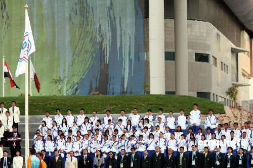 当地时间11月30日下午,第十五届亚运会中国台北体育代表团在多哈亚运村举行升旗仪式。中新社发 洪少葵 摄