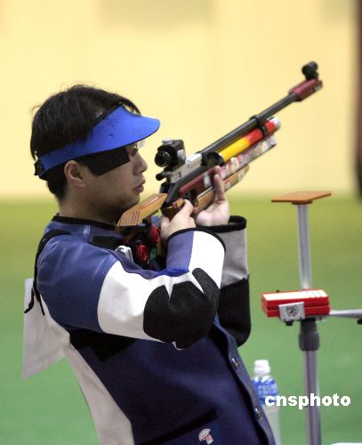当地时间12月2日,中国射击代表队在男子十米气步枪夺得金牌,同时也是第十五届亚运会首枚金牌。中新社发 李刚 摄