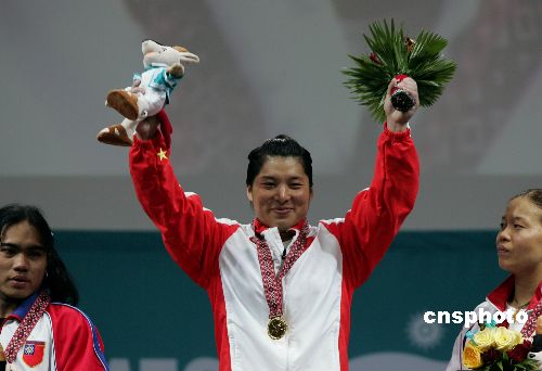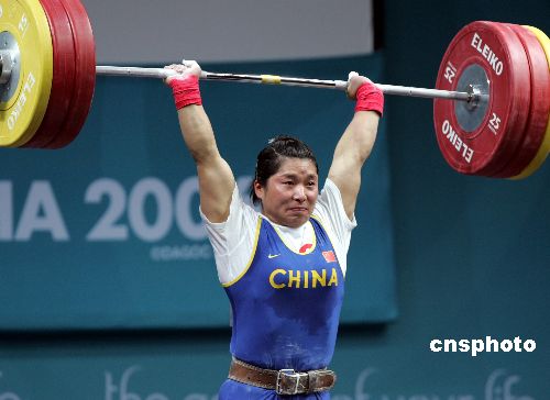 当地时间12月4日,中国举重运动员刘海霞在多哈亚运会女子69公斤级举重比赛中,以265公斤的总成绩获得金牌。中新社发 李刚 摄