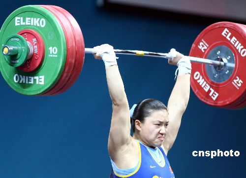 12月5日,第15届多哈亚运会女子75公斤级举重决赛,中国选手曹磊以抓举120公斤、挺举152公斤、总成绩272公斤成绩摘得金牌。中新社发 廖文静 摄