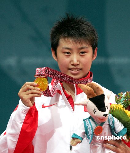 当地时间12月7日下午,在多哈亚运会乒乓球女单决赛中,中国小将郭跃苦战7局击败中国香港选手帖雅娜获得冠军。多哈亚运会男子乒乓球单打决赛,中国选手王皓战胜队友马琳夺得金牌。中新社发 李刚 摄
