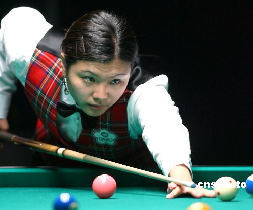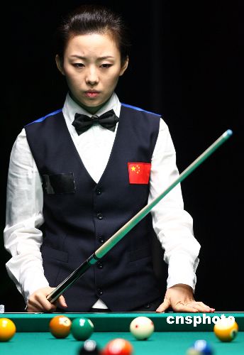 12月9日,多哈亚运会台球女子八球个人赛半决赛,素有中国台球第一美女之称的潘晓婷以5:7不敌中国台北选手林沅君,无缘决赛。中新社发 廖文静 摄