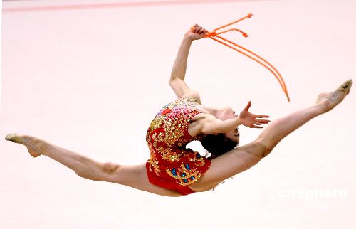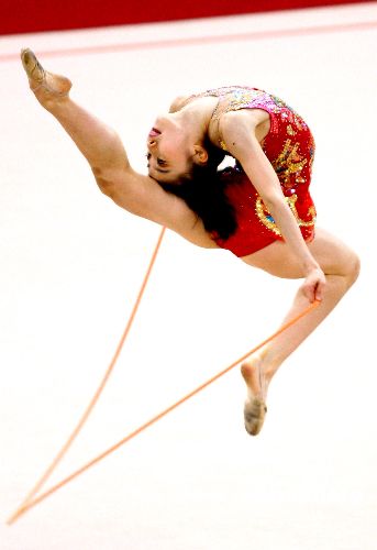 当地时间十二月十日晚,在多哈亚运会女子艺术体操个人全能赛决赛中,中国选手肖一鸣获铜牌。中新社发 廖文静 摄