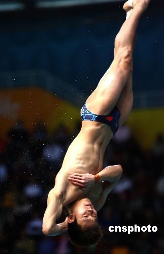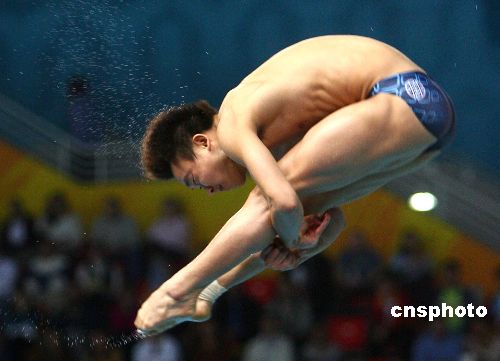 当地时间十二月十三日晚,多哈亚运会跳水男子单人三米板决赛中,中国选手罗玉通以488.95 分夺得亚军。中新社发 廖文静 摄