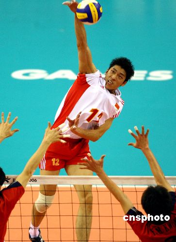 当地时间十二月十四日晚,在多哈举行的亚运会男子排球决赛中,中国队以1:3不敌韩国队,获得亚军。中新社发 廖文静 摄