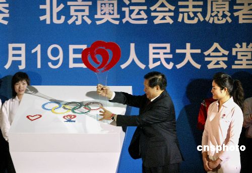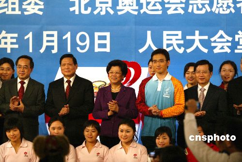 一月十九日,“志愿中国.人文奥运”主题活动暨北京奥运会、残奥会京外地区赛会志愿者招募启动仪式在北京举行,北京奥组委主席刘淇、北京奥组委第一副主席陈至立出席。中新社发 任海霞 摄