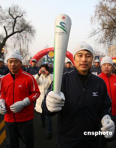 1月20日,第六届亚洲冬季运动会“皓月杯”北大湖雪上赛区火炬传递仪式在吉林市拉开帷幕。此次火炬传递活动共分为陆上传递、水上传递、乘车传递和雪上传递四个部分。火炬传递起于吉林市政府门前,全程约六十一公里,历时将近三个小时,最终将圣火传递到吉林北大湖雪上赛区。第六届亚冬会将于一月二十八日至二月四日在吉林省长春市举行,其中雪上项目在吉林市北大湖滑雪场进行。中新社发 苍雁 摄