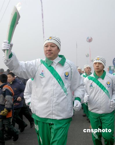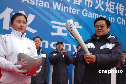 一月二十一日,第六届亚冬会圣火回到承办城市长春,并在这里进行六个小时的火炬传递。本次火炬传递活动行程四十公里,途经长春市五大城区,共有一百零八名火炬手、二百一十六名护跑手和数万名长春市民参与。沿途还融入汽车传递、滑冰传递等具有地方风情的火炬传递方式。中新社发 张博文 摄