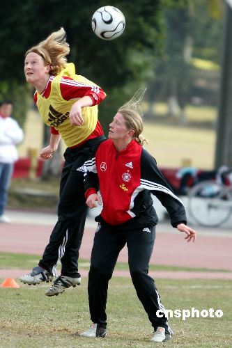 2007年1月24日,德国女足队员在训练中。为备战四国女足邀请赛,主教练奈特率领德国女足进行抵穗后的首练。中新社发 大漠浪子 摄