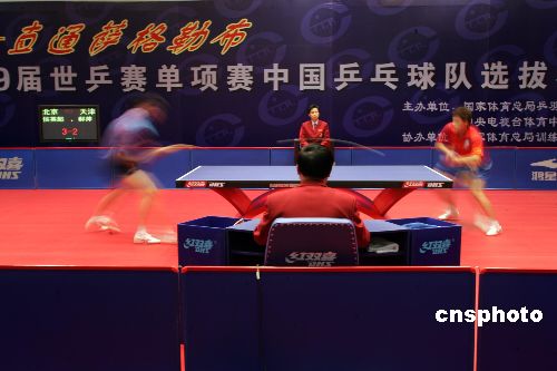 二月九日,为备战今年五月在克罗地亚首都萨格勒布举行的第四十九届世乒赛单项赛,二零零七年中国乒乓球队男队内部选拔赛“直通萨格勒布”第一阶段比赛,在北京国家体育总局拉开战幕。中新社发 武仲林 摄
