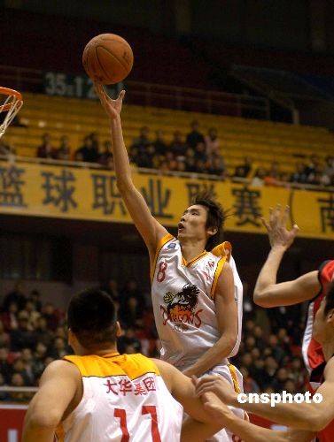 2月23日晚,2006-2007赛季CBA联赛季后赛首轮江苏南钢主场以128比116胜山东黄金。中新社发 刘建民 摄