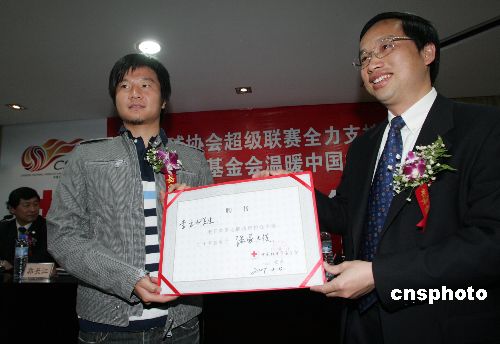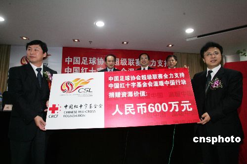 二月二十五日,中国足协在北京召开新闻发布会,宣布中超联赛将与中国红十字基金会发起并组织实施“温暖中国——贫困肿瘤患者救治活动”,这也标志着二零零七年中超联赛的全面启动,但冠名依然未定。据悉,此次中国足协超级联赛将一次性捐赠价值六百万的广告资源,期望以此来唤起更多人士尤其是广大足球从业人员及球迷的公益意识,扩大“温暖中国行动”的社会影响力,让更多需要救助的贫困肿瘤患者早日得到救助。中新社发 武仲林 摄