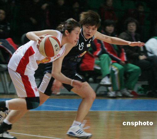 2007年3月3日,WCBA全国女子甲级联赛第2轮,北京金隅长城女篮在河北秦皇岛市奥体中心体育场主场迎战浙江女篮,最终以89:74大胜浙江远东太平洋。中新社发 刘学忠 摄