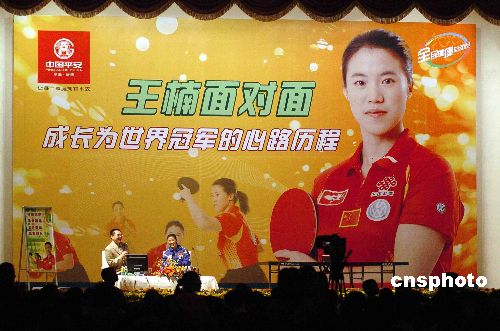3月4日,世界冠军王楠来到深圳,以“平安健康大使”的身份出席中国平安“奥运明星见面会”活动。来自深圳、广东、佛山、贵州、广西的逾千名群众与心中的偶像见面。活动中王楠参与现场访谈,作为中国夺得世界冠军最多的乒乓球选手,王楠坦陈“成长为世界冠军的心路历程”。同时与现场观众互动进行别开生面的趣味乒乓球“对战”,并与挑战者们合影留念和赠送亲笔签名的乒乓球拍。中新社发 吴峻 摄