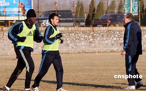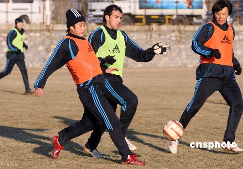 3月8日,在大连实德足球队训练基地,几名外援在训练。据悉, 实德已经确定租借塞尔维亚外援达科•德里尼奇一年,他的场上位置是前锋、左边前位、前腰。中新社发 卢沙 摄