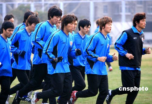 3月19日,泰山队亚冠小组赛的第二个对手——韩国城南一和队飞抵济南,该队主帅金学范带来19员战将,主力队员悉数在内。城南一和在韩国K联赛曾七次称王,实力强劲。新赛季开始前,城南一和招兵买马,目前队内聚集了金东炫、崔成国、金斗炫、金相植等多名国字号队员,其中金斗炫还是2006赛季K联赛最有价值球员。罗马尼亚外援内亚加、巴西外援莫塔和达席尔瓦三名外援均实力不俗。中新社发 周青先 摄