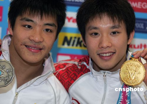 第十二届世界游泳锦标赛跳水男子1米板决赛3月21日在澳大利亚的墨尔本举行,22岁的中国选手罗玉通以477.40分的成绩获得金牌。他的队友20岁的中国选手何冲获得银牌。中新社发 任晨鸣 摄