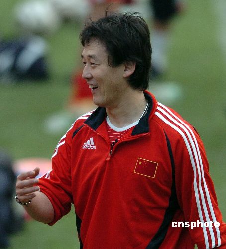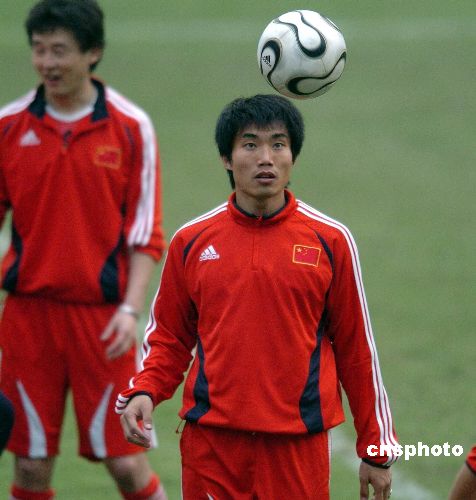 2007年3月21日,为备战与澳大利亚队的比赛三名海外队员孙继海、郑智、董方卓归队,国足在人员不整的情况下来到广州越秀山体育场训练。中新社发 吴峻 摄