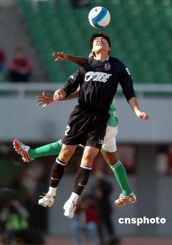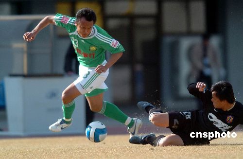 2007年4月1日下午,新赛季中超联赛进入第4轮角逐,在北京丰台体育中心体育场主场作战的北京国安队与深圳上清饮队1比1握手言和。 中新社发 吴峻 摄