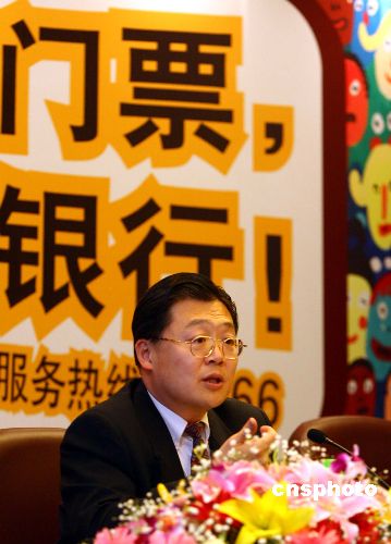 四月十六日,中国银行在北京召开新闻发布会宣布:中国银行在内地的一万一千多家网点全面启动北京奥运门票代销工作,其中一千家网点将参与回收预定表的工作。此次奥运门票最终数量及选择原则,由北京奥组委决定。中新社发 廖文静 摄