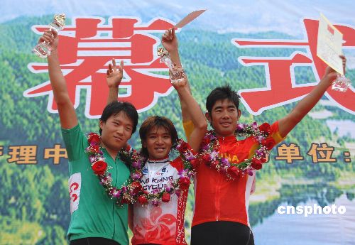 6月13日,2007“宏宇杯”全国公路自行车冠军赛(第二站)在湖北武汉市黄陂区木兰乡进入第三天比赛,经过激烈的拼博,来自中国香港队的87号运动员黄金宝荣获168公里组男子个人赛第一名。中新社发 楚天行 摄