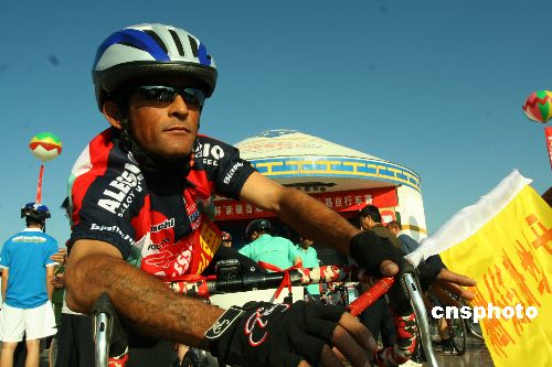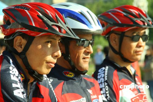 6月16上午,新疆首届环赛里木湖公路自行车赛在博尔塔拉蒙古自治州开赛。新疆189名参赛选手参加为期两天、全程为268公里的比赛。中新社发 志君 摄