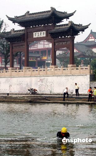 6月26日,山东游泳爱好者朱俊海在扬州东关古渡下水畅游大运河。据悉,朱俊海计划历时两个月全程畅游1794千米京杭大运河,用自己的方式来“迎奥运、宣环保、传承运河文化”。6月9日他从杭州三堡船闸码头下水,沿途将经过20个地市,预计8月8日在北京上岸。中新社发 赵大军 摄