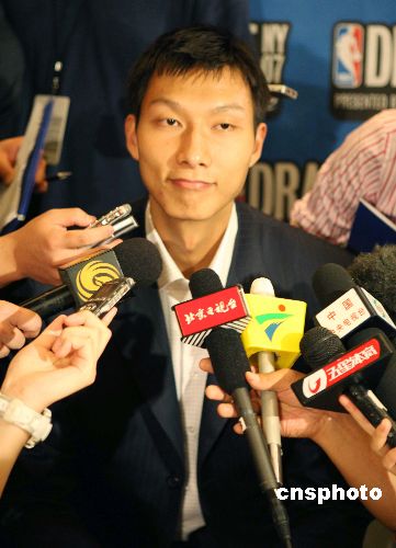 中国球员易建联作为最被看好的NBA选秀候选球员,六月二十七日在纽约接受国际媒体的联合采访。易建联表示,自己已为选秀做足准备。中新社发 李静 摄