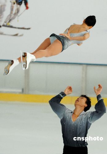 七月二日,深圳世界之窗二期阿尔卑斯冰雪世界揭幕。花样滑冰世界冠军申雪、赵宏博出席发布会并加盟深圳世界之窗国际滑冰俱乐部,以培养更多的冰上运动员。中新社发 陈文 摄