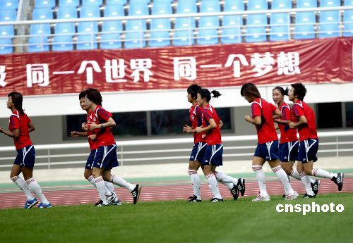 7月2日,中国女足在辽宁沈阳训练备战四国赛。中国队对墨西哥队的比赛7月4日晚在沈阳举行。背景资料:承办2007好运北京女足国际四国赛的秦皇岛和沈阳,2008年奥运会时将成为足球的分赛场。依照北京奥组委的安排,奥运会的各个赛场在北京奥运开幕前将承办一系列的比赛,而本次四国赛正是整个奥运测试赛的一部分。中新社发 张一浩 摄