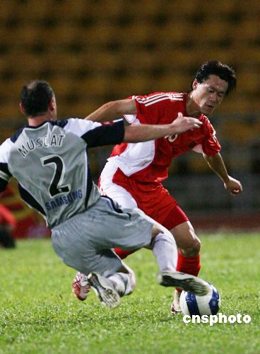 七月四日晚,中国国家足球队在香港小西湾运动场对阵去季澳洲职业足球联赛冠军球队墨尔本胜利队,进行亚洲杯决赛周前最后一场热身赛。中新社发 武仲林 摄