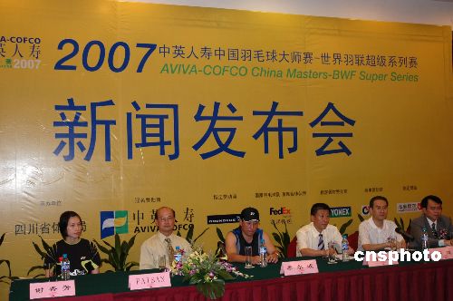 7约9日,中国羽毛球队总教练李永波在新闻发布会现场接受媒体提问。2007中英人寿中国羽毛球大师赛7月10日将挥拍成都,本届中国羽毛球大师赛共设奖金25万美元,被世界羽联列为2007年12站超级系列赛中的一站,同时也是2008年北京奥运会积分赛。中新社发 鲁彦 摄