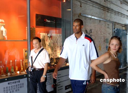 七月十一日,姚明在休斯敦火箭队的队友巴蒂尔来到北京七九八艺术区拍摄广告,其间他在接受记者采访时表示:“我已经跟姚明通过电话了,我也知道姚明是一个非常忙的人,尤其是现在要忙着准备他的婚礼。我这次匹克之行也是非常忙的,本来可能会有一块儿吃晚饭的机会,但是现在只能用一个‘可能’来回答,也许会在一块儿吃晚饭。”无意中,巴蒂尔证实了“小巨人”的婚期已经临近。中新社发 廖攀 摄