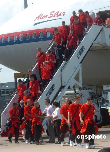 七月二十一日,万众期待的英超班霸曼联抵达澳门国际机场,展开亚洲之旅的第三站赛事。曼联在澳五天期间将与深圳上清饮队举行友谊赛并进行多项活动。中新社发 史利 摄