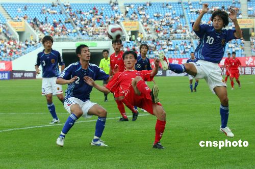 8月1日,在辽宁沈阳奥体中心举行的四国邀请赛首轮比赛中,日本队以2:1战胜朝鲜队。中新社发 黄金昆 摄