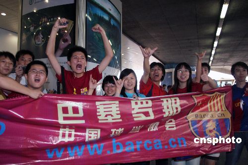 | 8月3日清晨6时许,经过长途飞行后,西甲豪门巴塞罗那队乘坐的奥地利航班抵达北京首都国际机场,开始为期8天的亚洲之行。目前,巴萨队的大巴已抵达位于北京金融街的威斯汀酒店,队员也已入住。尽管抵达时间很早,但机场仍有大约200名左右球迷前来迎接,他们身着整齐的巴萨球服,口中高呼心中偶像的名字。据悉,下午球队将正式举行新闻发布会,晚上8点,巴萨将进行抵达中国后的第一堂训练课。8月5日,他们将在北京迎战丰台体育中心与北京国安队进行一场比赛。中新社发 博芽影像 摄