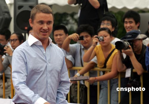 八月五日,二00七斯诺克上海大师赛举行红地毯秀,三十九位台球大师悉数亮相,包括中国神童丁俊晖。中新社发 潘索菲 摄