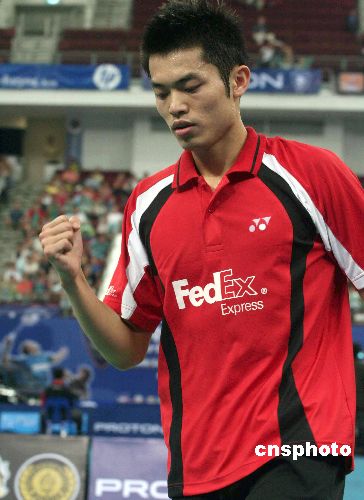 八月十七日,羽毛球世锦赛进入高潮,中国选手鲍春来直落两局击败丹麦好手乔纳森,与淘汰印度选手斯里德哈的林丹会师四强。中新社发 苏祥新 摄
