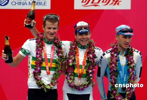八月十九日,各国运动员在北京居庸关和八达岭长城之间的公路自行车赛道上展开激烈决赛。当日,为期两天的2007国际公路自行车邀请赛落下帷幕。比赛中,来自澳大利亚的车手卡德尔·埃文斯以三十二分钟二十八秒九二的成绩获得冠军。中新社发 廖攀 摄
