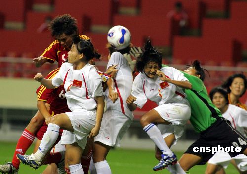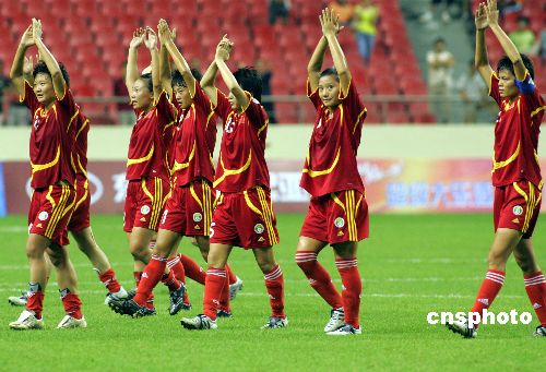 8月23日,FIFA2007年中国女足世界杯主赛场上海虹口足球场迎来改造后的首场正式比赛,由中国女足坐镇主场迎战越南女足。最终中国女足发挥出色6比0狂扫越南女足,取得比赛胜利。中新社发 汤彦俊 摄