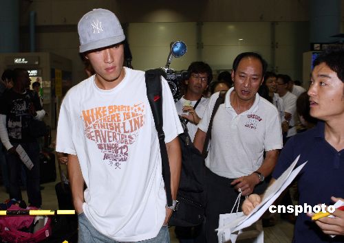 八月二十四日傍晚,中国著名跨栏运动员刘翔抵达日本大阪,他将参加八月二十五日至九月二日在这里举行的第十一届世界田径锦标赛。中新社发 毛建军 摄